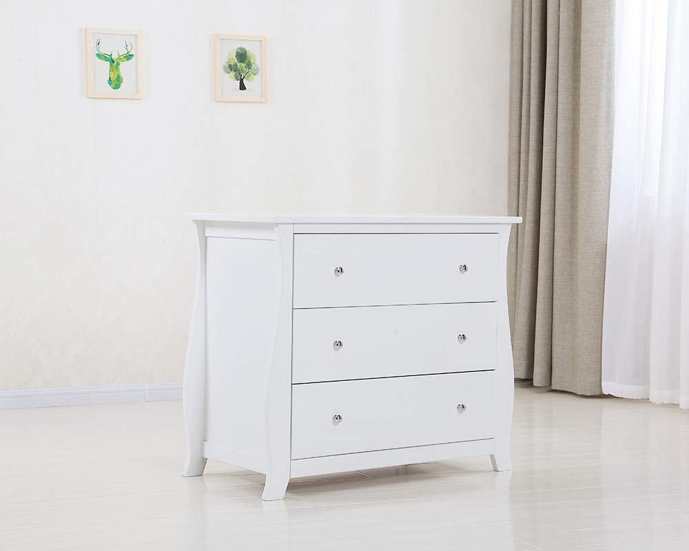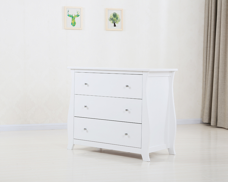 The smooth French-style curves give it a soft, elegant look that never goes out of style. The top surface doubles as a diaper changing area, so you save space and get two functions in one.